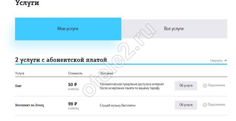 - Проверка подключенных платных услуг Теле2