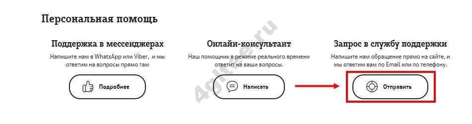 - Кликните по значку «Отправить» под строкой «Запрос в службу поддержки»;